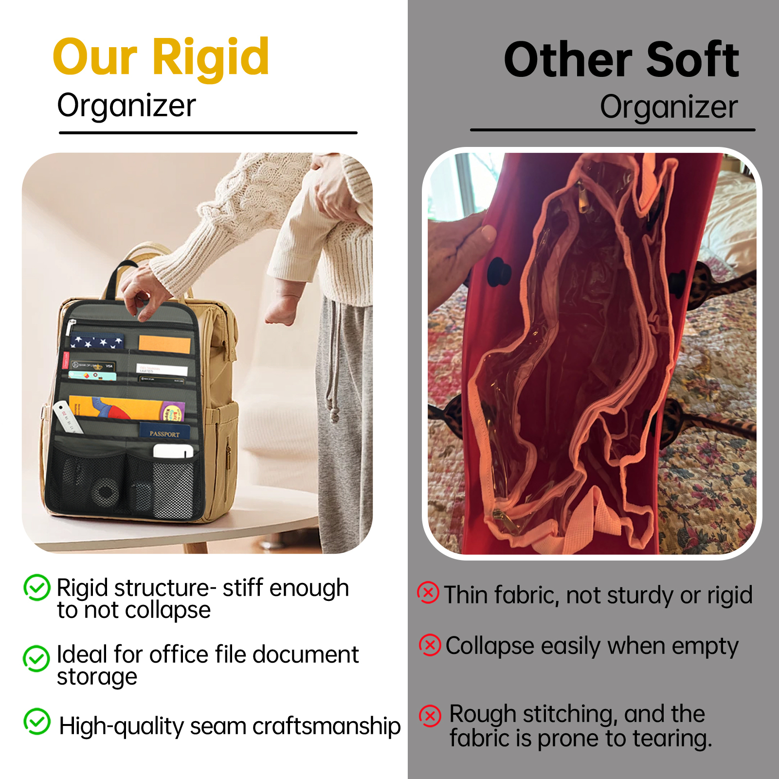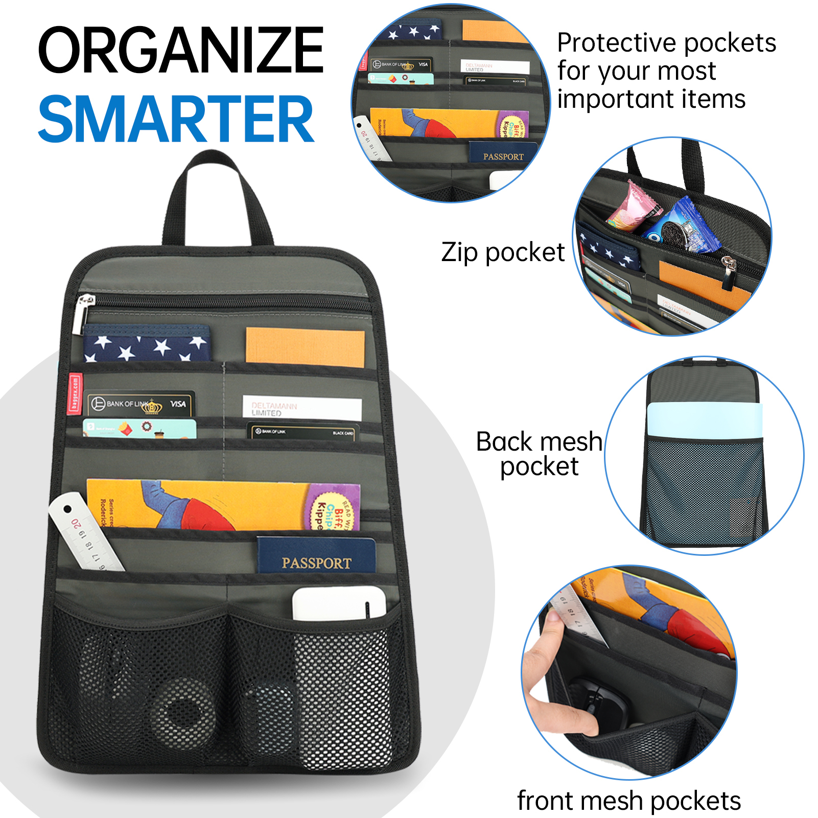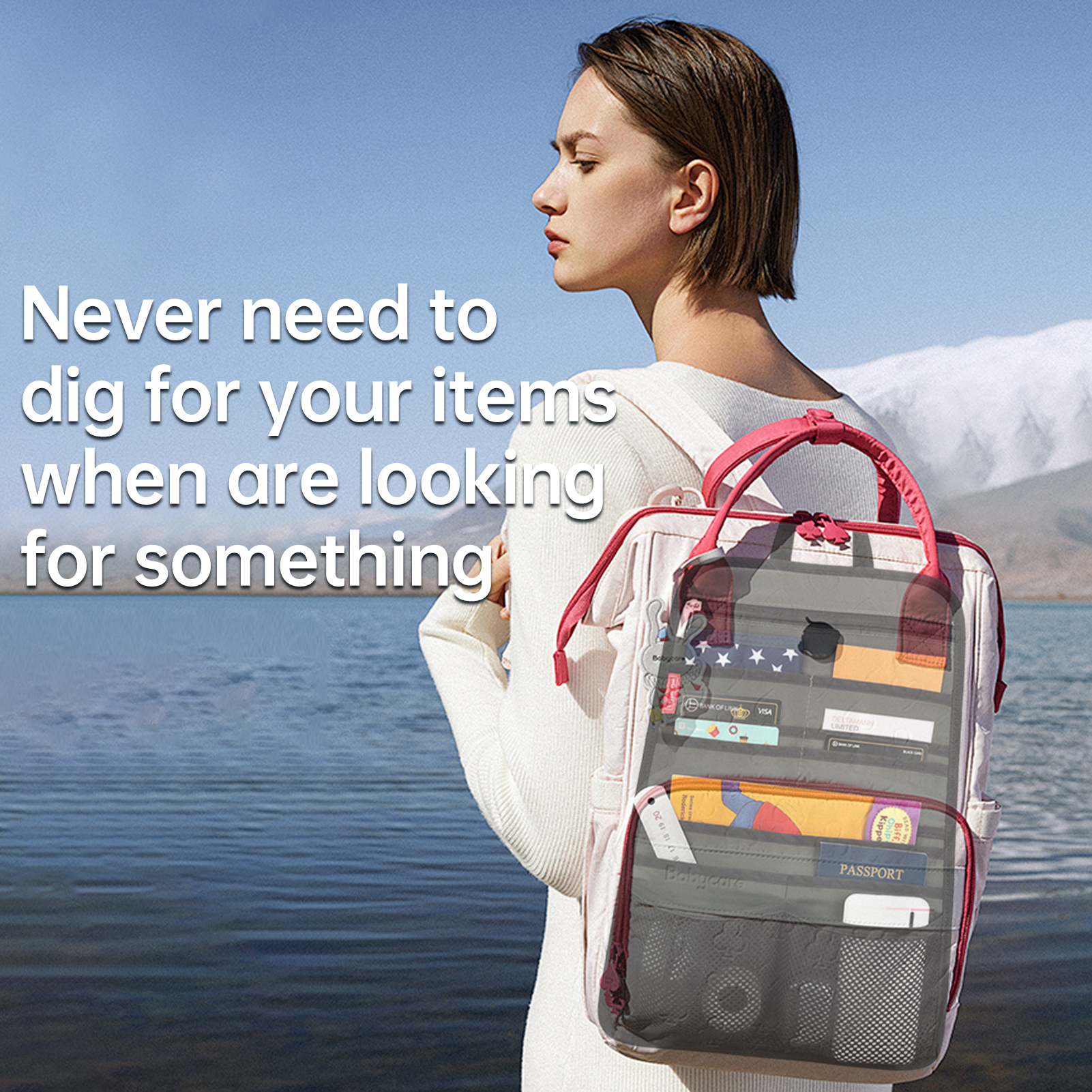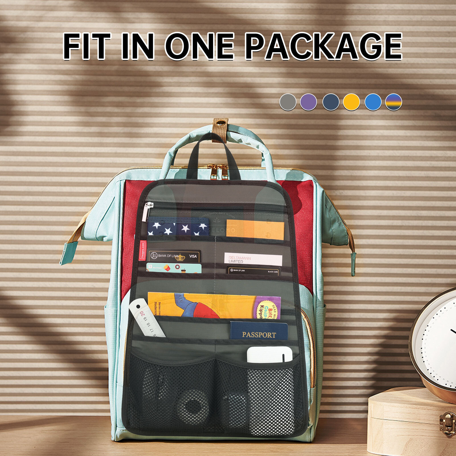 1. 有一拉鏈袋及三個開口袋,可放A4 size文件、行程規劃本、記事本、小型物品。