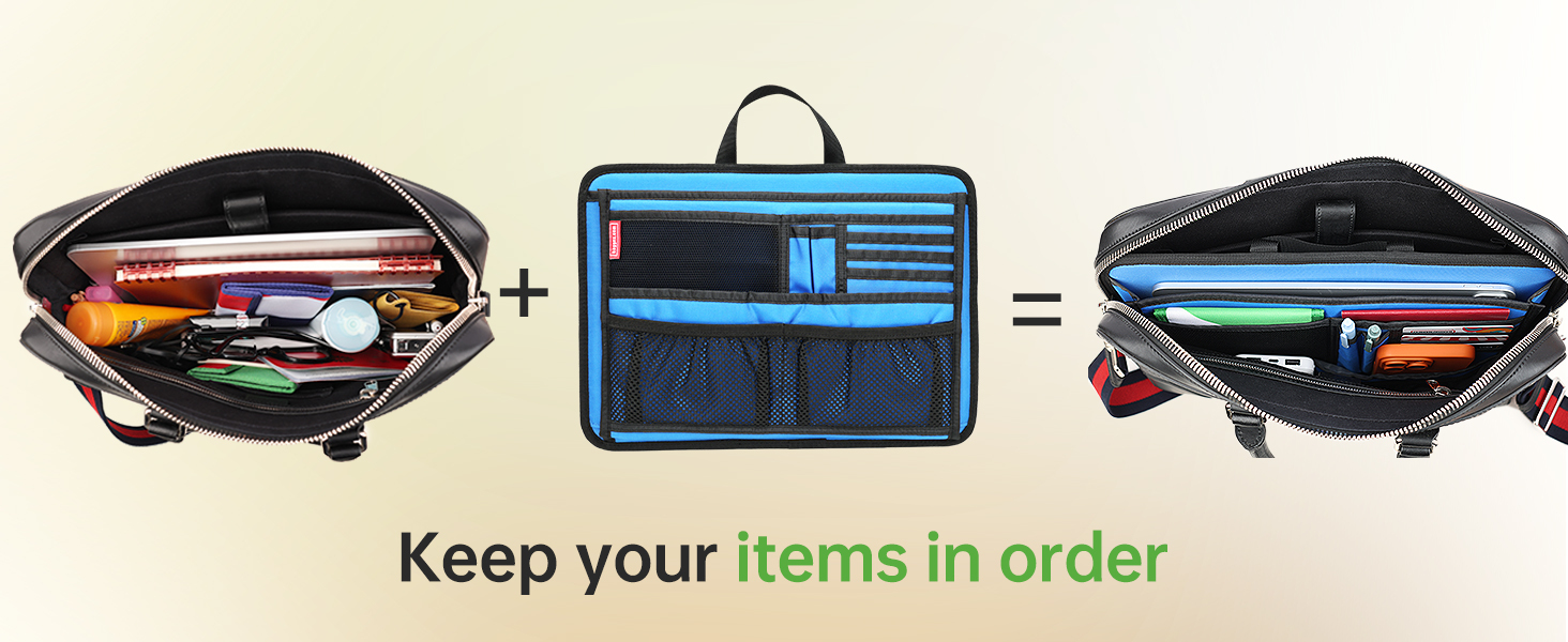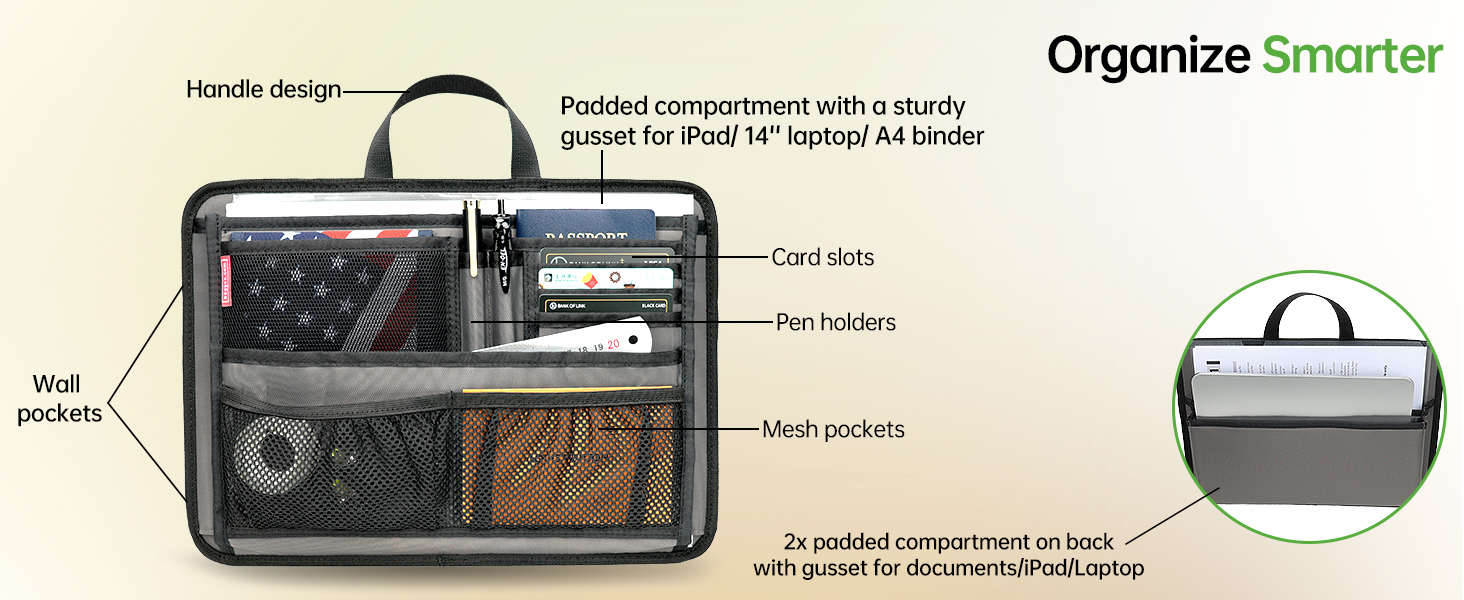 -手機、ipad、文件、信用卡、筆及零碎私人物品井井有條地放在袋內