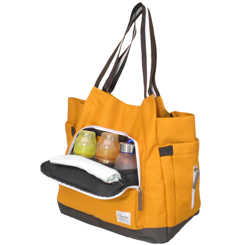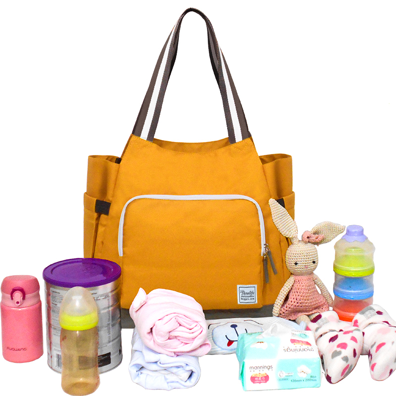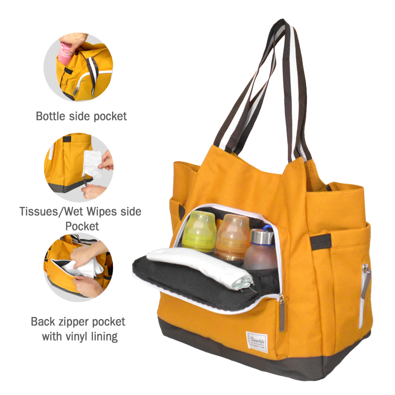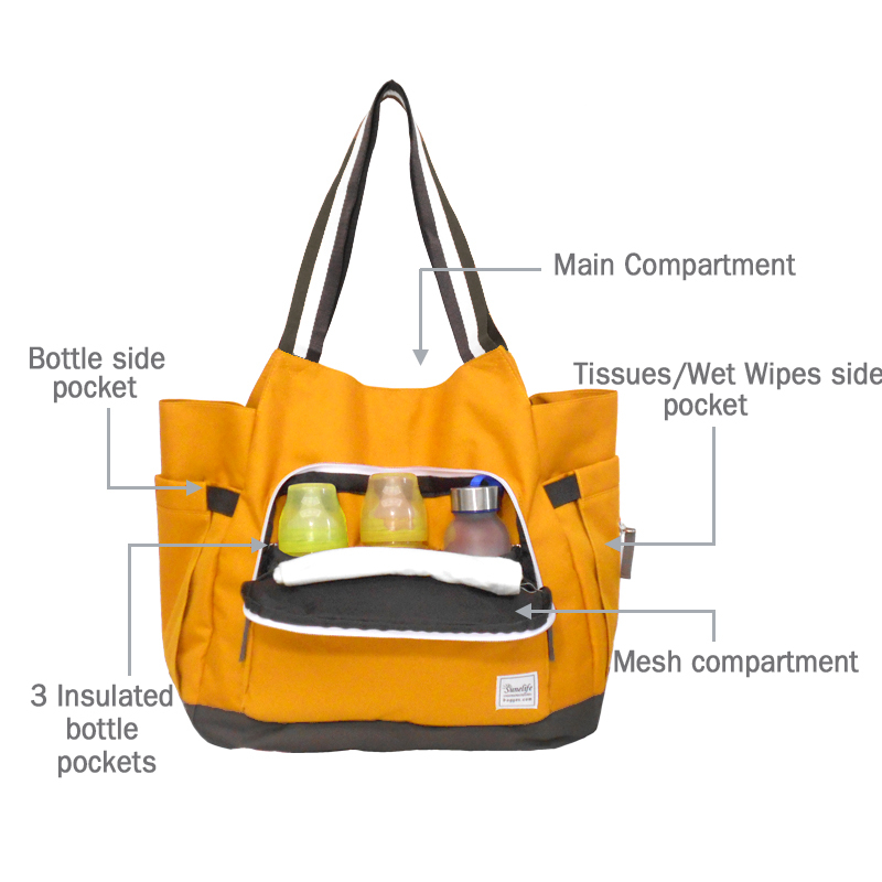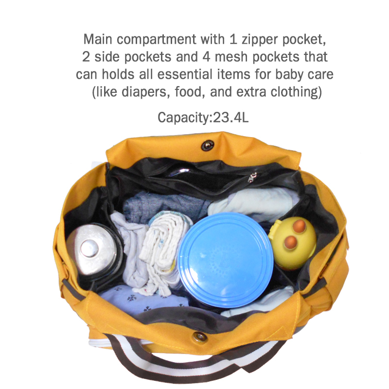 1. 主袋有1個拉鍊袋,2個側袋和4個網袋,可以容納所有嬰兒必需品(例如尿布,食物及額外衣物)