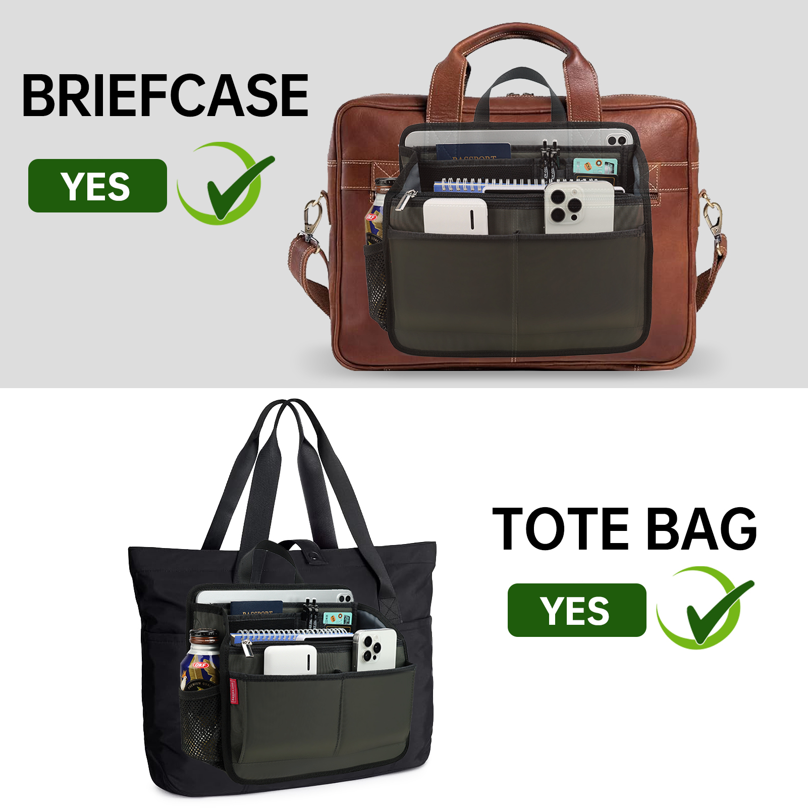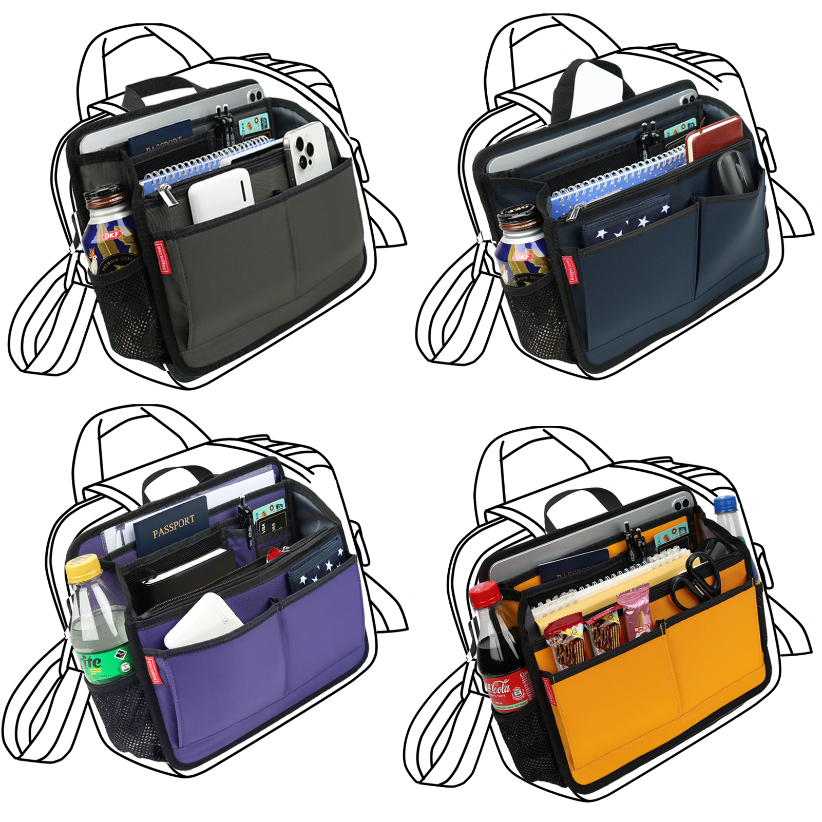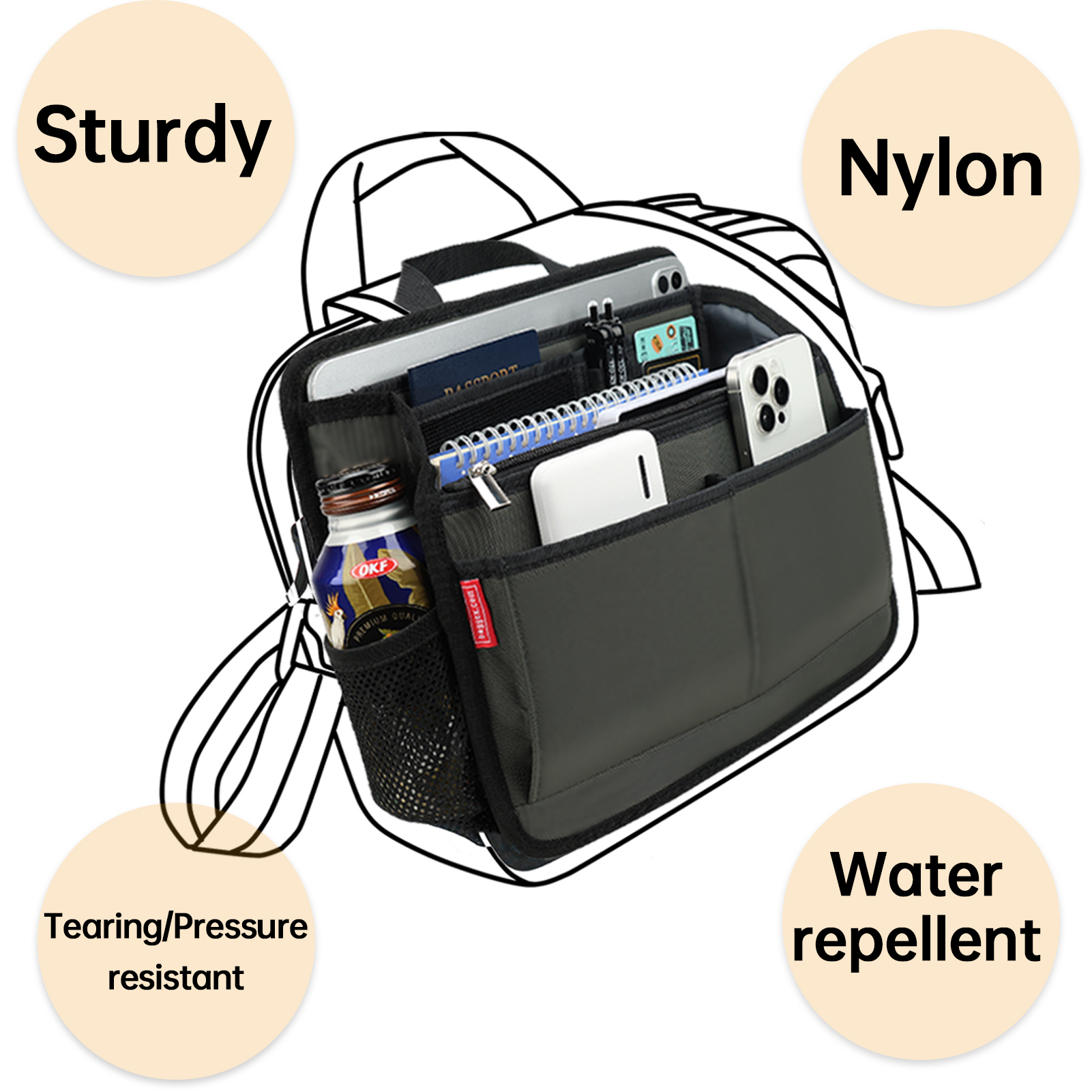 -手機、ipad、文件、信用卡、筆及零碎私人物品井井有條地放在袋內